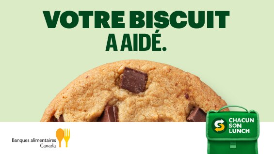 Notre programme Chacun son lunch est en train de compter tous les biscuits que vous avez achetés la semaine dernière et fera un don à Banques alimentaires Canada. Merci de nous avoir aidés à nourrir des enfants!